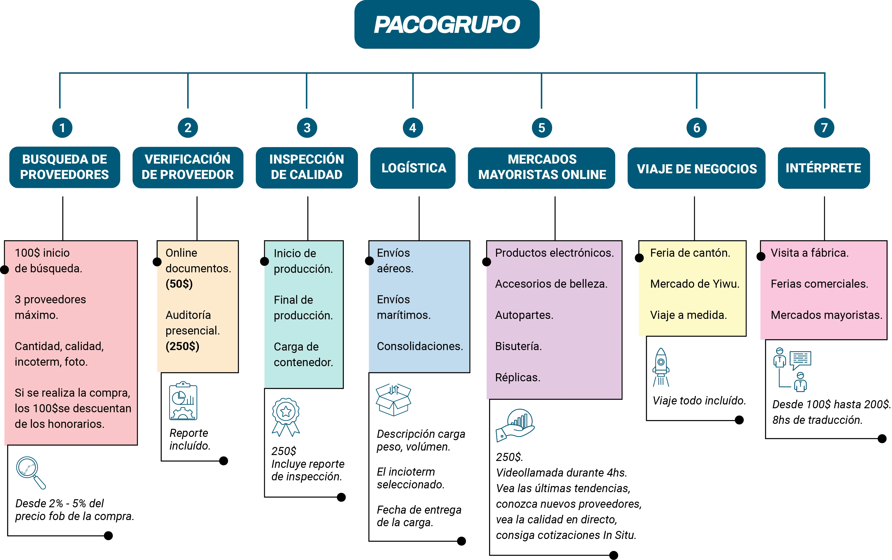 PACOGRUPO es una agencia de compras en China, con más de 10 años de experiencia ayudando a comerciantes, importadores y distribuidores a vender mercadería China en Latinoamérica. Estamos ubicados en la ciudad de Guangzhou y nuestro objetivo es que puedas importar de China de forma segura y ágil, para que tu empresa sea más competitiva en tu mercado.